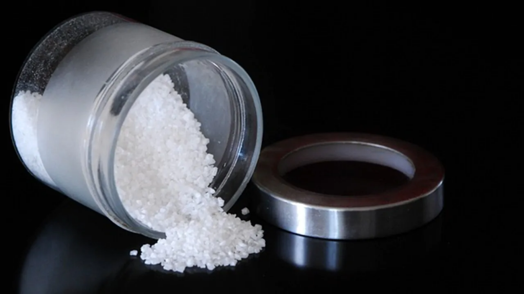 Por último, puede utilizar sal, un ingrediente muy útil para eliminar las manchas gracias a sus propiedades ligeramente abrasivas. En un recipiente con agua caliente, vierta 4 cucharadas soperas de sal gruesa y una cucharada sopera de jabón de Marsella. Moje una esponja en la mezcla, frote la superficie de la cabina de ducha, aclare y seque.